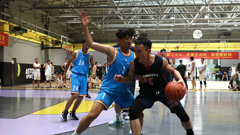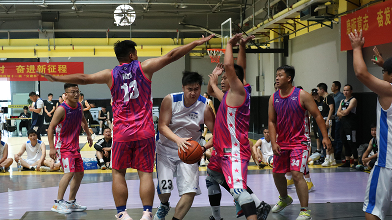隨著一聲哨響,東、西兩側(cè)場地運動員在裁判拋出的籃球面前,屈膝發(fā)力,伸直手臂,“啪”的一聲,完成跳球,比賽正式開始。賽場上球鞋摩擦地面,籃球砸地的聲音此起彼伏,場周吶喊助威的聲音不絕于耳。此時的他們拋下平日里工作時的嚴(yán)肅形象,身影矯健、防守周密,拼盡全力奮力廝殺,他們勇敢果斷、活力無限。他們用精湛的球技和堅韌拼搏、誓不言敗的精神,為觀眾們奉獻(xiàn)了許多精彩的瞬間。