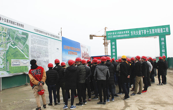 3月8日下午,十五里河濕地工程和方興大道下穿十五里河隧道工程項(xiàng)目(以下簡(jiǎn)稱方興大道項(xiàng)目)迎來(lái)了安徽理工大學(xué)土木工程專業(yè)參觀團(tuán),近百名學(xué)子在項(xiàng)目駐地及施工現(xiàn)場(chǎng)進(jìn)行了系統(tǒng)的學(xué)習(xí)、交流。